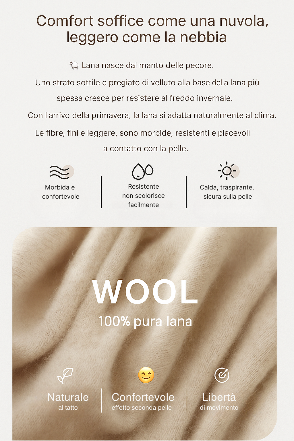 Maglione in 100% lana merino extrafine australiana 🐑, morbido, caldo e traspirante ❄️🔥.